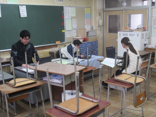6年生も1組に集まりこんな感じでオンライン学活が行われていました。