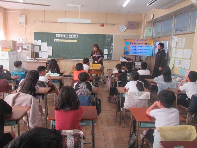 1月14日(水)4時間目に4年生に「体の不思議」と題して、保健指導が保健室のK﨑先生から行われました。