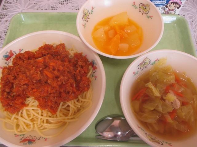 今日のスパゲティーミートソースを味わいながら、友だちや先生と過ごす時間を大切にしましょう。