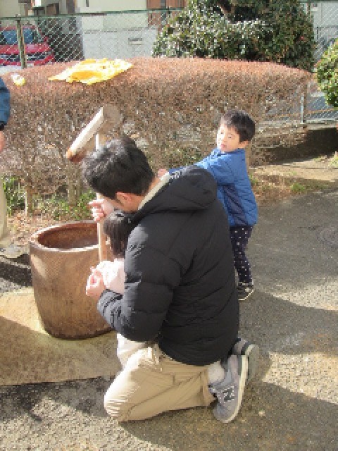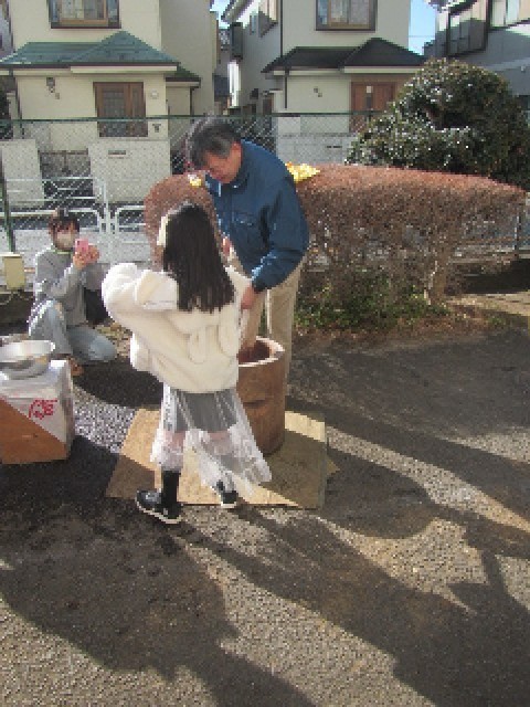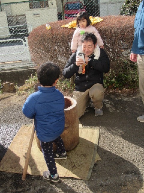 もちつき体験、たくさんのお友だちに体験してもらうことができました。