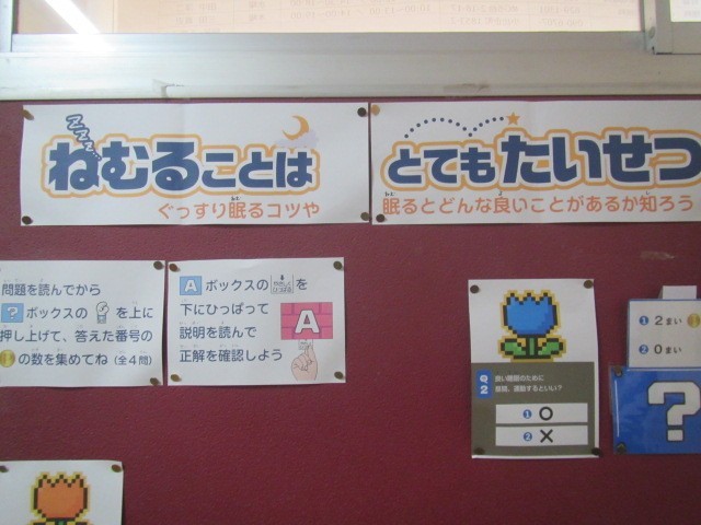 保健室前の廊下の掲示で、「ねむり」について興味深いことが書かれていました。