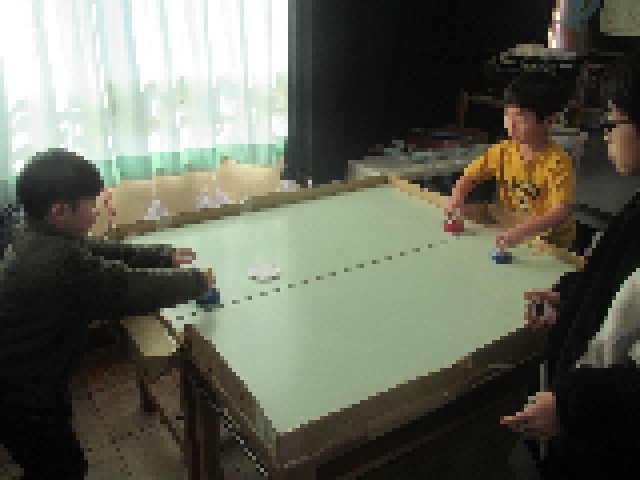ホッケーゲームはなるほど、エアーが下から出ていなくても結構なスピードで勝負できていました。