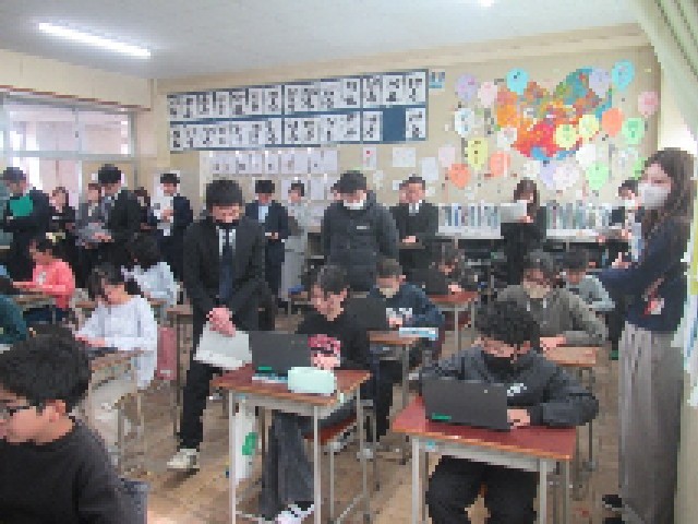 授業後の協議会では、4つのグループに分かれて授業についての話をして振り返りました。(写真中)