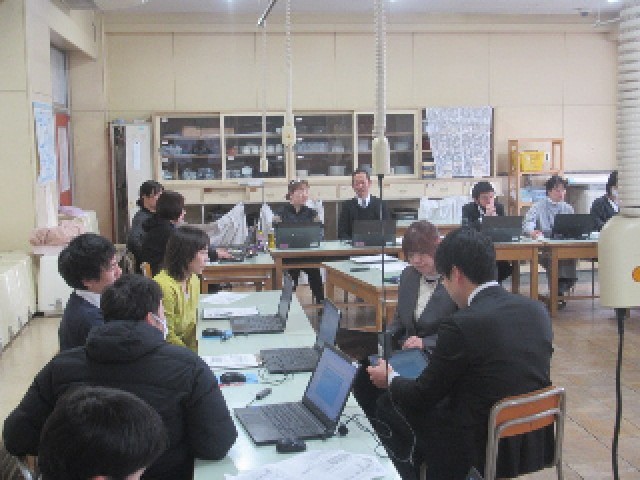 2月28日(水)5時間目に、校内研修会(校内研)として、研究授業(提案授業)が5年3組で行われ(写真上)、その後研究協議会が家庭科室で行われました。