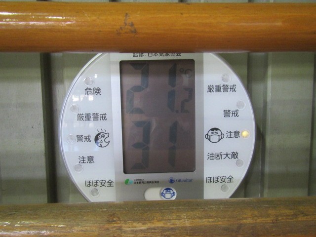 体育館は温かいというより、もわっとしていたので暖房を消そうとしたら、すでに消えていました。