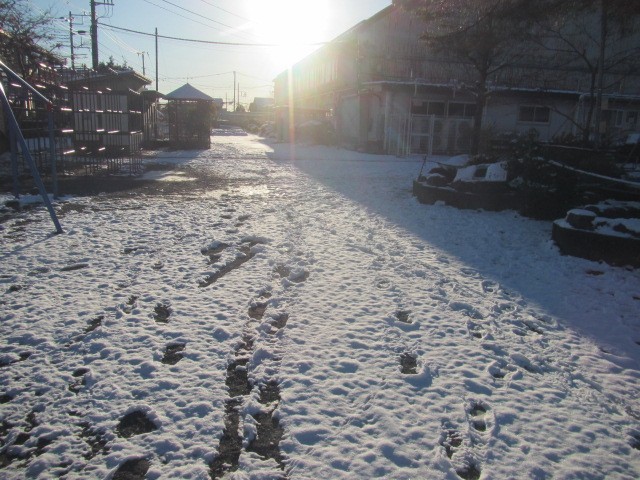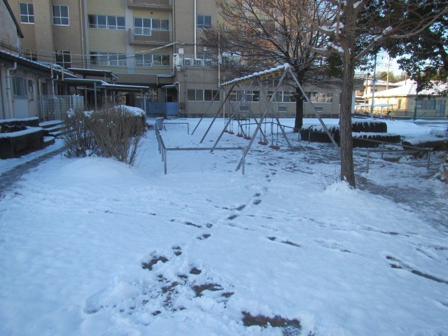 校庭にはたくさんの雪が残っていました。(写真は2月9日(月)7:30ごろ撮影)