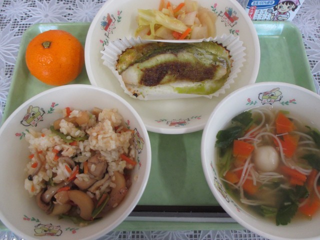 今日の給食の「かてめし」の【かて】は「まぜる」という意味です。むかし、お米はとても貴重な食べ物だったため、たくさん食べられませんでした。そのため、野菜などをごはんとまぜて量を増やしたのが始まりです。