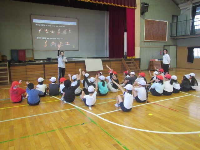 2月13日(金)2・3・4時間目に3年生一クラスずつ、元日本代表の体操選手の溝上絵里加先生をお招きして、体操教室を行いました。
