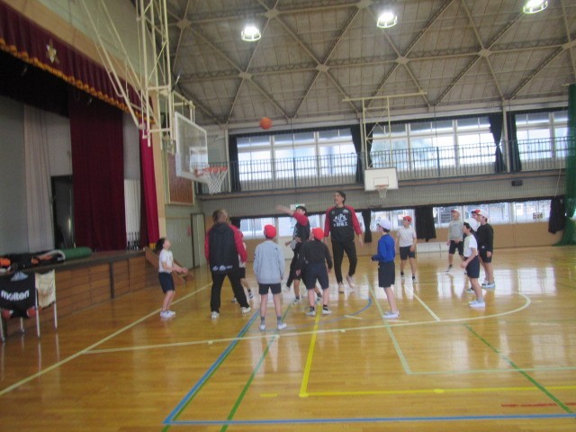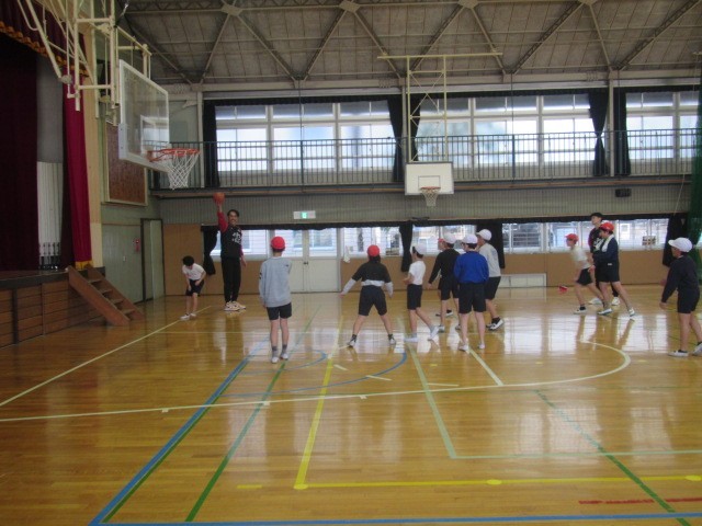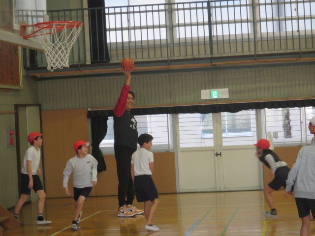 最後には、コーチ陣対、5年1組さんでハーフコート対決!