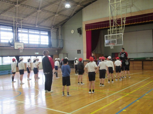 3時間目は2組さん、4時間目は3組さんが、バスケットボールを教わりながら体を動かすことの楽しさを体験しました。
