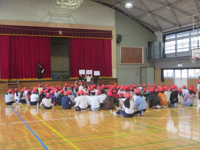 2月24日(火)お昼休みの時間になかよし集会が体育館で行われました。