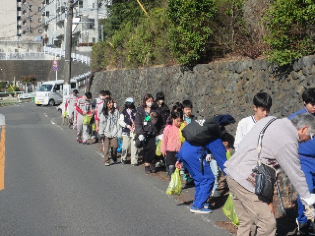 椚中生や椚田小の児童、保護者や地域の方、トヨタ自動車大学校の皆さん、交通安全協会の皆さんとで地域をきれいにして回りました。