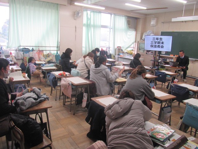 子どもたちの成長の様子、ご家庭のご理解やご協力への感謝、春休み中の生活、新年度のことなどが話されました。