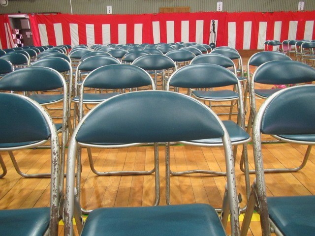 保護者席は昨年度のご意見をもとに前後をずらしました。(写真下)