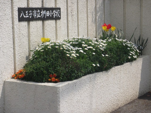 園芸ボランティアさんが植えてくださった白門の花壇では、チューリップの花が咲いていました。(写真上)