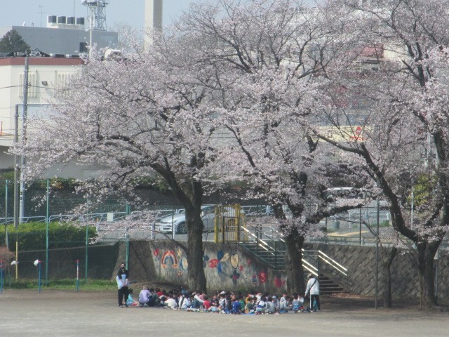 が、一生懸命咲いている桜の木を、学童さんがたくさん愛でてくれて、桜の木も喜んでいることでしょう。