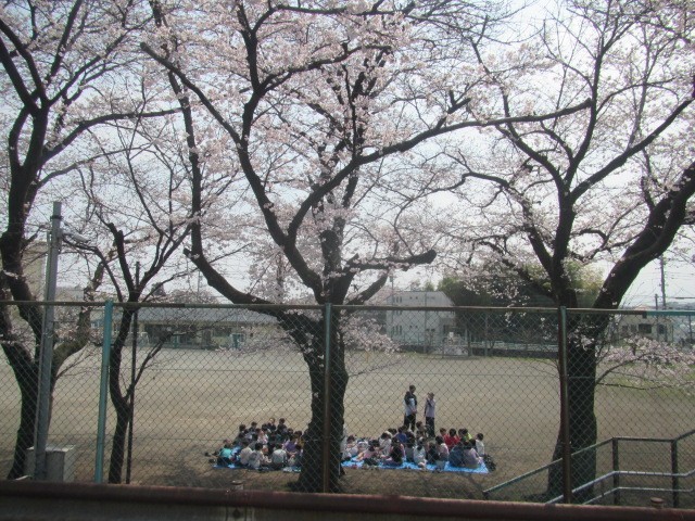 お昼には、校庭にある桜の木の下で、学童さんがシートを広げてお弁当をみんなで食べていました。(写真中・下)