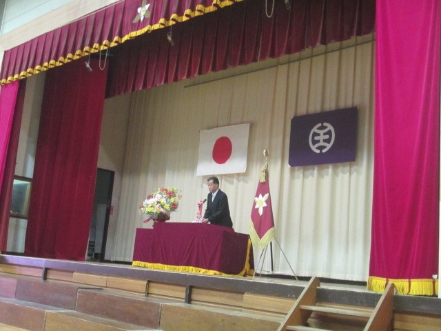 教育委員会告辞 教育総務課長のT井様が教育委員会を代表してお祝いの言葉を述べてくださいました。(写真下)