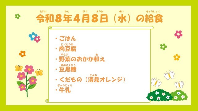 今日から、新しい学年での給食が始まります。新しい教室、新しい友だち、新しい先生と食べる初めての給食ですね。