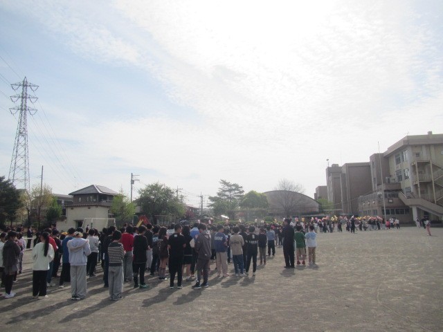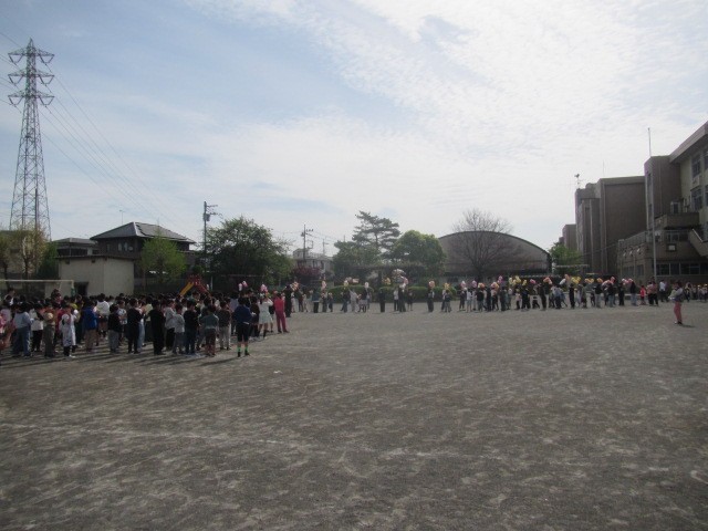 対面式と言うのは、1年生が、2年から6年生までと対面しあいさつを交わし、正式に椚田小の仲間入りをする式です。