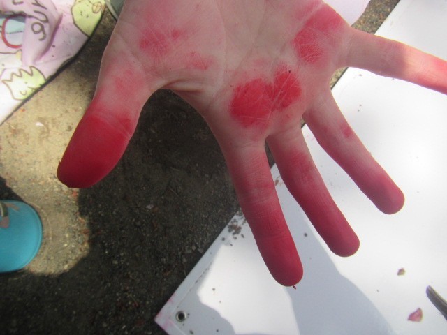 手をクレヨンで真っ赤にしながらも一生懸命描いている2年生でした。(写真+1)