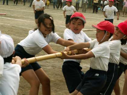 4年生の団体競技は「棒引き」です。どこに行くかの判断とタイミング、勝負はどちらが勝つか、いつも?です。みんな力いっぱい頑張っていました。