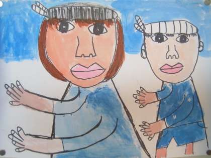 3年生が運動会の思い出を水彩画で描きました。人物が大きく描かれている絵が多く、見ていて迫力がありました。とても上手に描けています。