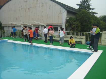 指導を前に先生方全員で、濾過機の操作講習会とプールの安全点検を行いました。来週こそはプールに入れますように。また、みんなが安全に学習できますように・・・。