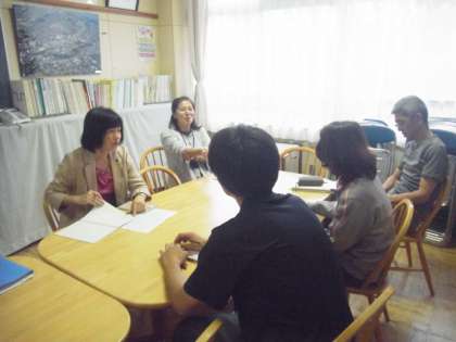 毎月一、二回の割合で「校内特別支援委員会」を開き、個別に支援を要するお子さんにどのような手立てができるかを話し合っています。今回もスクールカウンセラーの先生から助言をいただきながら、話し合いを行いました。