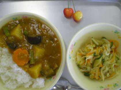 ❤カレーには ナス・いんげんが入りました。