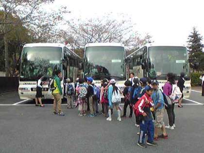 撮影後は一路帰校の途、車内ではドラえもんの上映開始、談合坂SAまで引率がほっとできます。