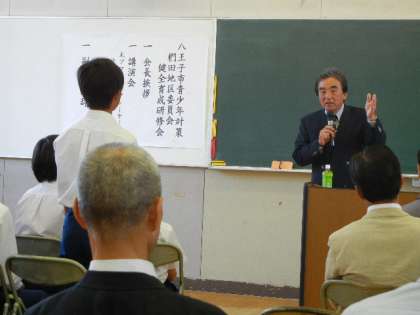 9月28日(土)、椚田中学校において、青少対椚田地区健全育成研修会が開かれました。講師は元プロテニスプレーヤー、現在は法政大学教授でいらっしゃる神和住 純先生でした。幼少頃のお話やプロテニスプレーヤーとして海外を転戦していたころのお話、現在の教職を通しての話など、子育てや人生の生き方など、参考になるお話ばかりでした。終了後は椚田中学校の生徒さんからもたくさんの質問がありました。