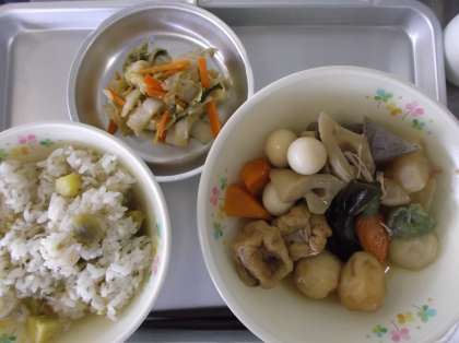 サツマイモご飯・おでん・ごま和え煮・牛乳