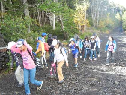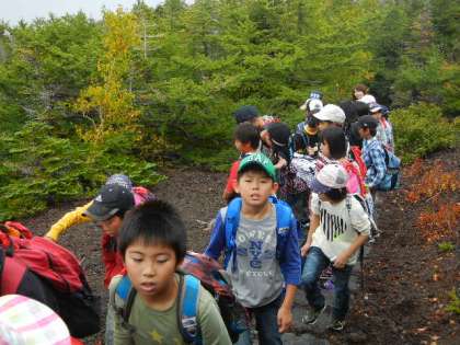 最初の行程は、奥庭から5合目までのお中道ハイキングです。みんな一緒に歩いています。