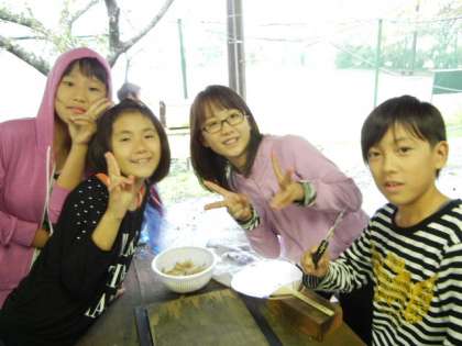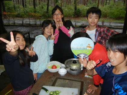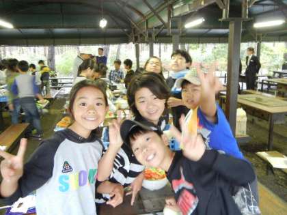 写真を見るとわかりますが、同時刻とは思えない明るさの違いです。そんな中でも、子供たちはサラダやカレーの野菜切りにグループで協力しながら、頑張っていました。