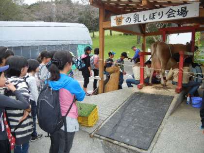 昼食後は牧場内を自由に見学です。丁度、乳搾り体験もできたので、希望者は乳搾りをしました。牧場内の様子は「学年のページ」「5年生」にも載せてあります。