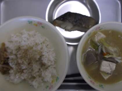 ごまご飯・なめたけ・焼きほっけ・豚汁・牛乳