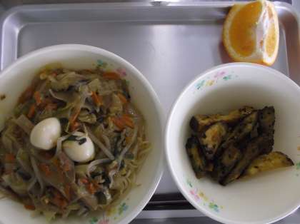 あんかけ焼きそば・大学芋・くだもの・牛乳