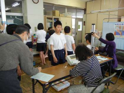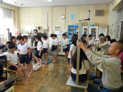 4月9日、全校児童が身体計測を行いました。身長・体重・座高を測ります。健康カードを見てニコニコする子供たち。心も身体も大きくなってくださいね。