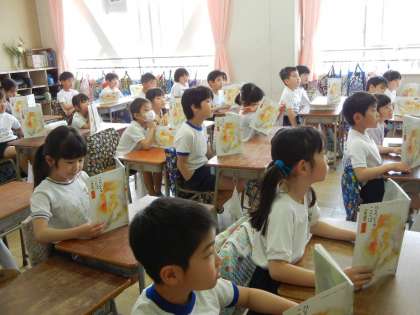 2年1組の授業風景です。国語の授業の導入でした。教科書の巻頭詩を学習していました。わかばの芽吹きから、これから学ぶ国語の学習に展開していきました。