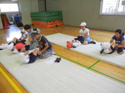 13日(金)梅雨の晴れ間に低学年のスポーツテストを実施しました。1・2年生には、5・6年生が付き添ってくれて、2時間でほぼ実施できました。6年生が1年生を、5年生が2年生をリードしながら、ペアで回数を数えたり、次の種目の場所まで連れて行ったりと大活躍してくれました。