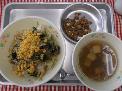 ビビンバ とうふときくらげのスープ くるみ黒糖 牛乳