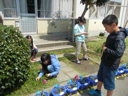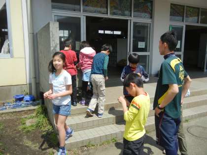 5年生が理科の学習をしていました。十円玉をピカピカにする植物を探して、磨いていました。どんな草がピカピカになるか、子供たちはいろいろな植物を試していました。あまりにきれいになるので、こちらがびっくりしてしまいました。