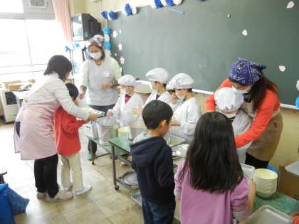1年生の給食が始まってから、1週間が経ちました。今年度も1年生の給食支援に多くのボランティアの方が来てくださっています。本当に有り難いです。13日から30日まで、13日間、延べ72人の方がご支援くださいます。今年の1年生は、とてもよく食べるようで、栄養士さんも喜んでいました。