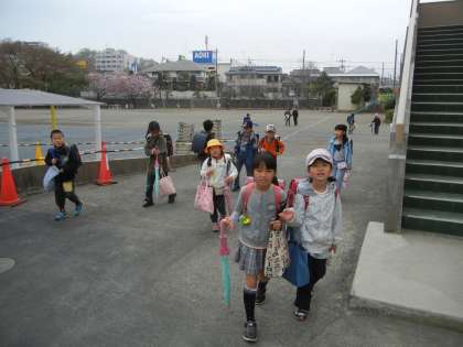 先生たちも、昇降口で子供たちを出迎えてくれています。