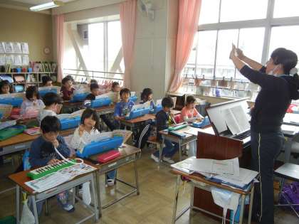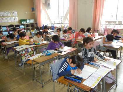 2年生は図工、国語、音楽と頑張っていました。一年経つと態度も立派です。