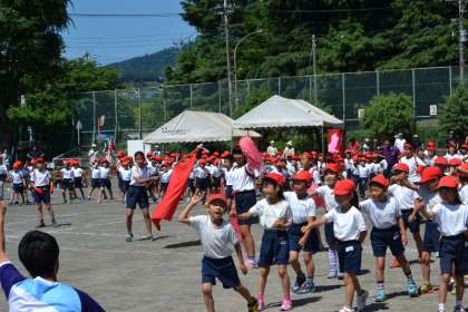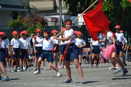 応援団も力が入っています。赤組は白の4連覇を阻むべく、みんなで力を合わせて応援です。