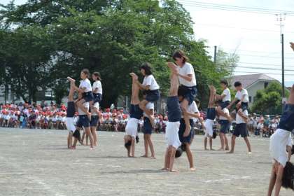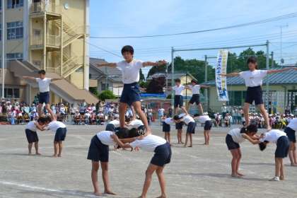 3人技です。ふらつかないよう土台がしっかりと重さに耐えています。