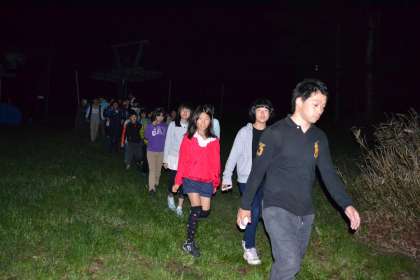 ナイトハイクは、宿舎裏のスキー場を回ってくるコースです。