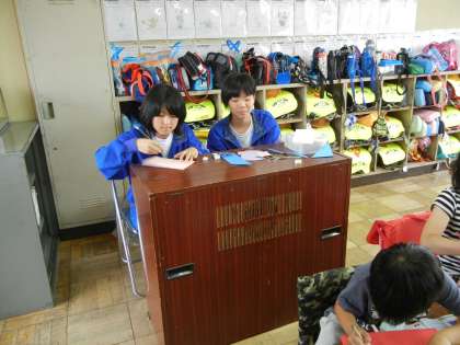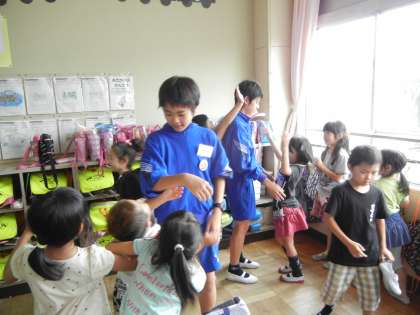 7日から3日間、椚田中学校の2年生4人が、本校で職場体験をしました。主に1年生の指導補助をしてくれました。また、6年生に、中学校生活の様子を話してもらいました。